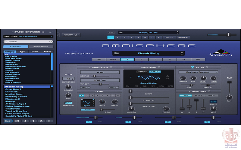Omnisphere Spectrasonics ، یکی دیگر از سازهای مجازی محبوب و بسیار مورد توجه در صنعت تولید موسیقی است. این سینت سایزر نرم افزاری دارای بیش از 14000 صدا و 20000 پارامتر است که آن را به یکی از بزرگترین کتابخانه های صوتی موجود تبدیل می کند.