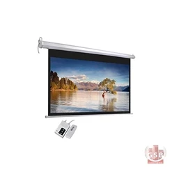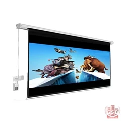 - 2. پرده نمایش برقی: پرده مجهز به موتور الکتریکی بوده و باز و بسته شدن آن با استفاده از ریموت کنترل یا کلید دیواری انجام میشود. این مدلها ظاهر شیکتر و حرفهایتری دارند. مناسب برای سالنهای همایش، سینمای خانگی و اتاقهای کنفرانس که به دنبال سادگی استفاده و اتوماسیون هستند. مدلهای دارای مکانیزم تنش برای حفظ صافی سطح، برای نمایش تصاویر 4K ضروری هستند.