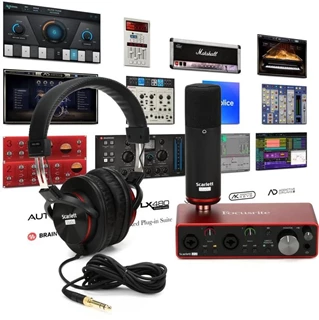 این پک شامل یک کارت صدای نسل سوم SCARLETT 2I2 ، میکروفن کاندنسر CM25 MKIII، هدفون پشت بسته HP60 MKIII و کابل میکروفن سه متری می باشد، که همه نیاز شما را برای ایجاد یک استودیوی خانگی و یا قابل حمل در ضبط کارهای کاملا حرفه ای تامین می کند.