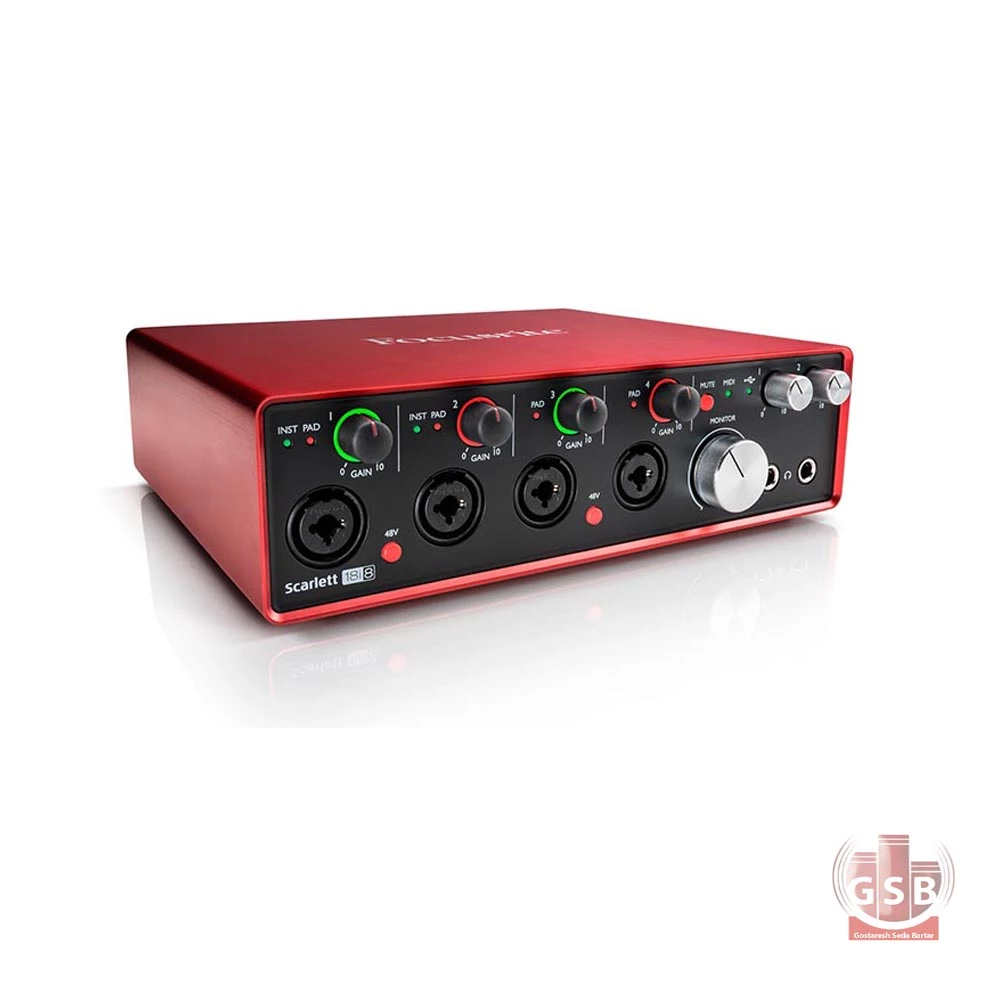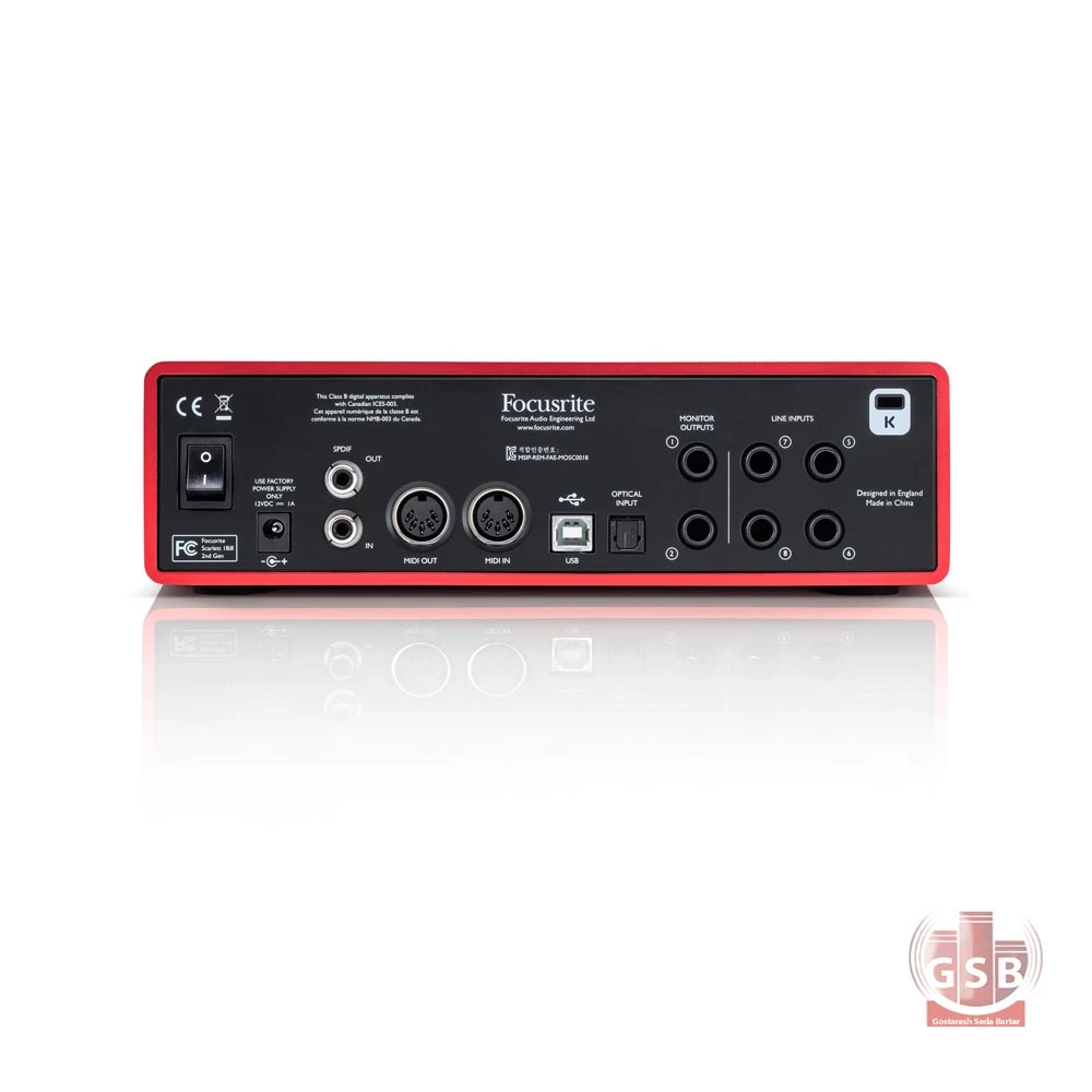The Focusrite Scarlett 18i20 (2nd Gen) provides 8 combo XLR inputs, 10 analogue line outputs, dual independent headphone outputs, ADAT I/O, SPDIF I/O, MIDI I/O and Word Clock out - enough options to become the hub of any