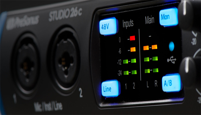 ابزار حرفه ای هر کار را آسان می کند. به همین دلیل این کمپانی اندازه گیری ورودی و خروجی حرفه ای را در Studio 26c قرار داده است ، به شما این امکان را می دهد که هنگام ضبط ، کاملا روی ورودی و سطح میکس کنترل داشته باشید. کنترل ساده مانیتور مستقیم ، سیگنال های ورودی آنالوگ را با پخش از طریق رایانه شما ترکیب می کند و نظارت را ساده می کند. دکمه Cue A / B به شما این امکان می دهد هنگام گوش دادن به هدفون ، بین هر میکس جابجا شوید ، که برای اجرای زنده و استودیو عالی است.