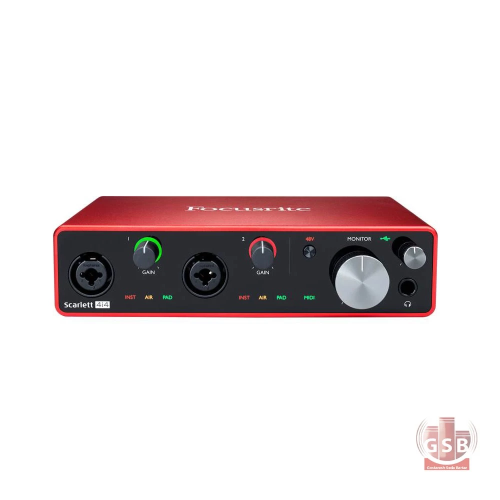 کارت صداScarlett 4i4 G3 از برند شناخته شده و خوشنامم Focusrite تحت لیسانس کشور انگلستان می باشد .این سری از کارت صدا ها با ورودی و خروجی های بیشتر از نمونه های قبلی ارائه گردیده و با نرخ نمونه برداری 24 بیت 192 کیلو هرتز می باشد . از ویژگی های این مدل اضافه شدن دو پری امپ و سوویچ Air میباشد که از ترانسفورماتور کنسول افسانه ای ISA را پشتیبانی می کند ،تا صدای ضبط های شما بازتر و روشن تر شود ، با اضافه شدن سوییچ Air کاربران دیگر نگران تنظیم دقیق گین ورودی و جنس صدا ی خود نیستندو میتوانند بدون افزوده شدن نویز یا صدای هوا به زمینه، فایل صوتی خودرا ضبط نمایند. به گفته کمپانی این قابلیت جنس صدای کلاسیک پری امپ های ترانسفورمری سری ISA از همین کمپانی را برای شما فراهم می سازد.