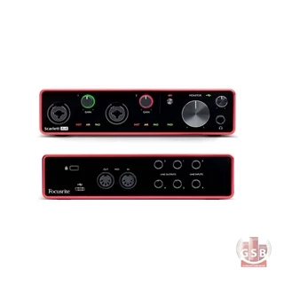 این سری از کارت صدا ها نیز دو ورودی اینسترومنت با هدروم بالا برای بیس، گیتار یا سینتی سایزر دارد ، همچنین دارای یک پنل پشتی که در این مدل که دو ورودی بالانس line، چهار خروجی بالانس line، ورودی/خروجی MIDI ، و خروجی های بالانس TRS L/R با کنترل level، خروجی هدفون با کنترل level مجزا و همچنین سویچ Air و مدار Direct Monitor برای مانیتور کردن ورودی با تاخیر نزدیک به صفر طراحی شده واز طرفی امکان اتصال USB برای اتصال به کامپیوتر های ویندوز و مکینتاش و همچنین شارژ قرار داده شده اما یک ورودی فانتوم پاور 48 ولت نیز در این مدل وجود دارد.