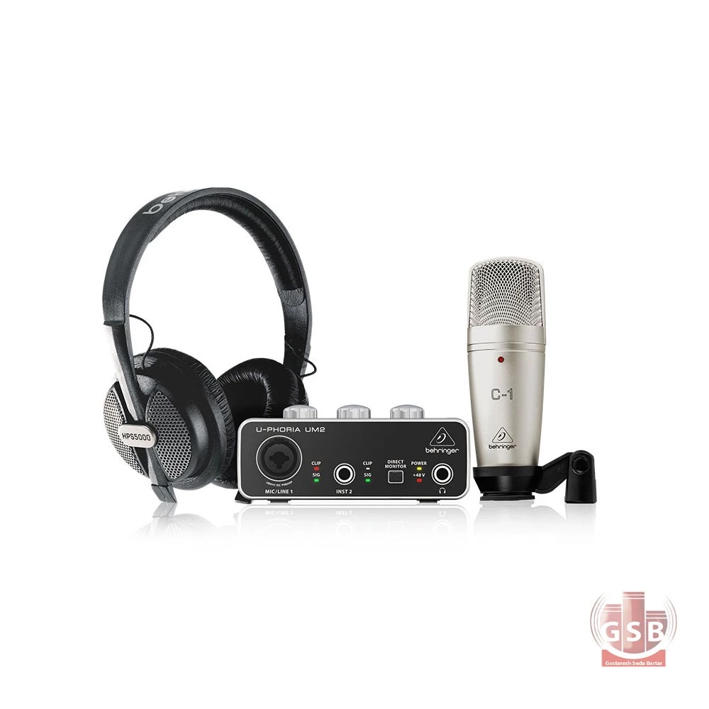 پک استودیویی Behringer U-Phoria Studio، یک مجموعه کامل از تجهیزات صوتی حرفه ای است که به طور ویژه برای نوازندگان، پادکسترها و تولیدکنندگان محتوا طراحی و تولید شده است. در داخل این پک استودیویی کارت صدای U-Phoria UM2 USB، میکروفن کاندنسر C-1، هدفون استودیویی HPS5000 و تمام کابلهایی که برای شروع کارتان نیاز دارید قرار گرفته است.