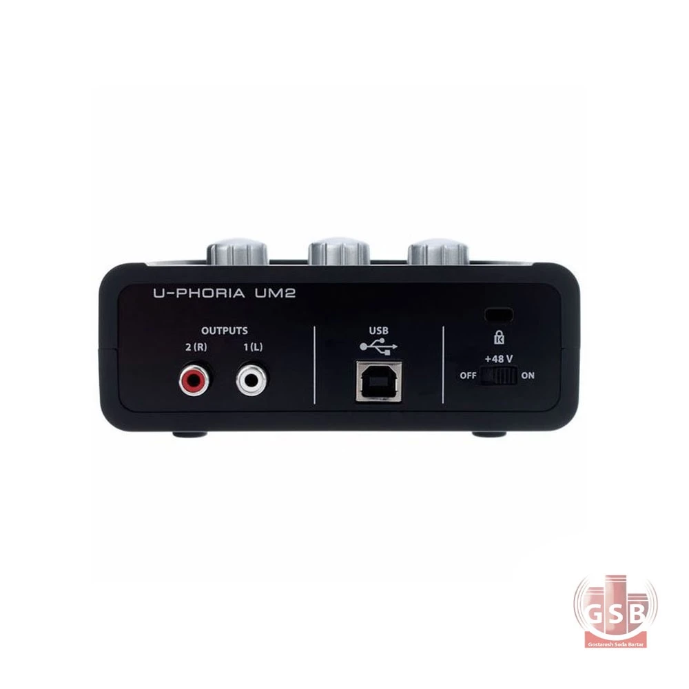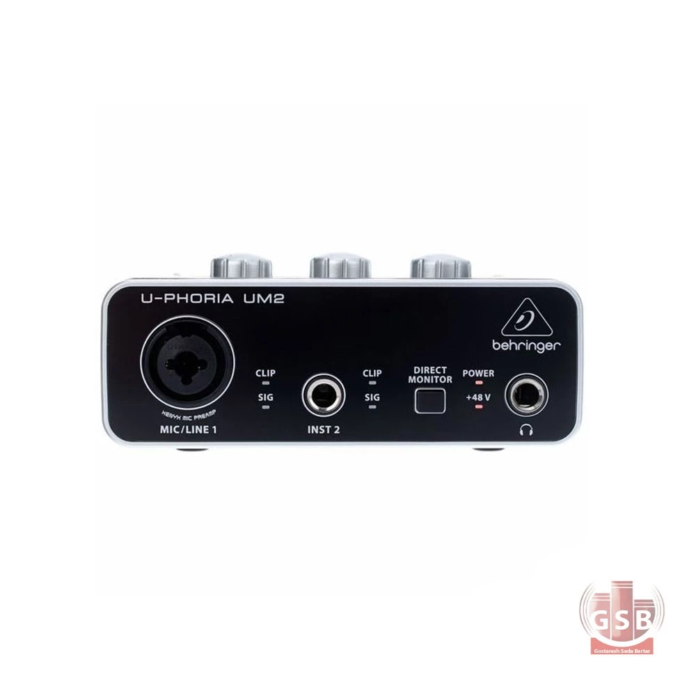 کارت صدا U-Phoria UM2 USB، با یک ورودی ترکیبی TRS/XLR، پری امپ میکروفن در کلاس استودیویی XENYX و یک ورودی اینسترومنت TRS، قادر به ضبط صدا با کیفیت بالاست و خروجی صدای قابل قبولی را ارائه میدهد. این کارت صدا با ورودی ترکیبی XLR و "TRS 1/4 و یک ورودی TRS برای ضبط گیتار یا باس، دارای دو عدد ال ای دی در پنل جلویی است و زمانی که در هر ورودی سیگنالی دریافت شود و یا سیگنال ورودی دچار کلیپ شود، رنگ ال ای دیها به رنگ سبز و قرمز تغییر میکند.